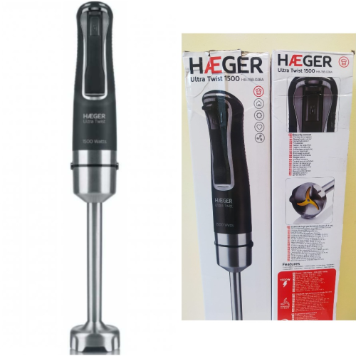 HAEGER Ultra Twist 1500 rokas blenderis apvieno ārkārtēju jaudu, precizitāti un ergonomisku dizainu, pārveidojot jebkuru recepti par praktisku un gardu pieredzi. Aprīkots ar 1500 W līdzstrāvas motoru, tas nodrošina pietiekamu jaudu, lai sasmalcinātu ledu, riekstus un cietākas sastāvdaļas, vienlaikus saglabājot krēmīgu zupu un delikātu mērču gludumu.