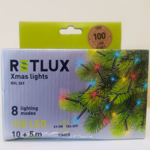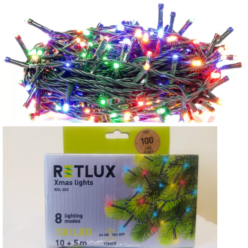 Retlux RXL 263 Ziemassvētku gaismas virtene 100 LED 10+5m (Bojāts iepakojums)