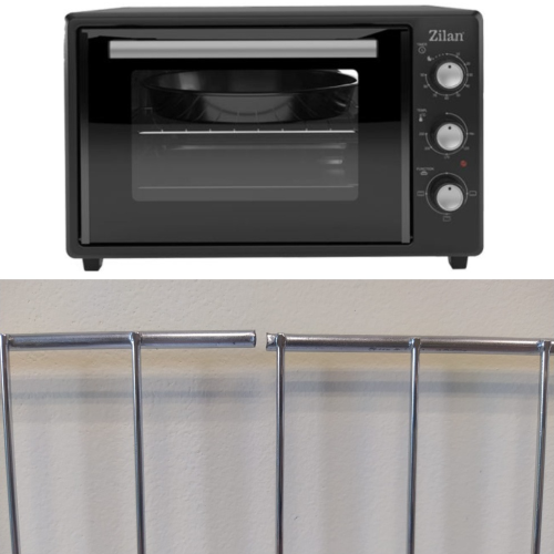 Iekļauts: apaļa paplāte, kvadrātveida paplāte un cepšanas reste