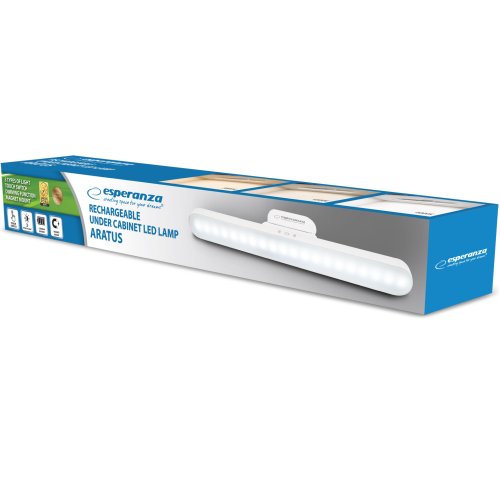 Functional and stylish under-cabinet LED lamp – Esperanza LUMOS – perfect for lighting kitchen countertops, wardrobes, workshops, or offices. Equipped with 40 energy-efficient LED lights, it offers three lighting modes: warm, neutral, and cool – allowing you to adjust the lighting to any situation.