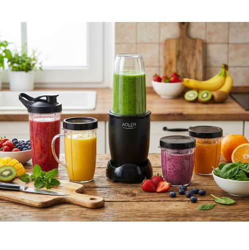 Блендер Adler AD 4084 — набор для приготовления смузи — станет вашим незаменимым помощником во всех ваших кулинарных нуждах. Благодаря мощному мотору и полному комплекту бутылок и крышек, этот блендер призван упростить вашу жизнь и сделать ваши напитки вкуснее. Элегантный дизайн и надежная конструкция гарантируют, что вы сможете наслаждаться вкусными смузи и другими напитками, приготовленными с легкостью и удобством.