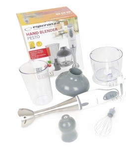Cik virtuves rīku ir nepieciešams, lai sajauktu bērnu formulas, mērces, dzērienus, augļus, dārzeņus, sieru un citas sastāvdaļas? Tikai viens! Šis blenderis var ietaupīt jūsu laiku, lai visas šīs minūtes sagatavotu! Tas ir pieejams vairākās jaukās krāsās. Ir jābūt vismaz vienai krāsai, kas atbilst jūsu virtuvei un jūsu gaumei! Ergonomisks rokturis Nerūsējošā tērauda nazis Nerūsējošā tērauda noņemams stieņu pakaramais Barošanas patēriņš 450 W Spriegums un frekvence: 220-240 V, 50/60 Hz ļoti kluss dzinējs, darbināms ar pilnu vara līdzstrāvas motoru 2 ātrumi Piederumi: kauss maisīšanai, 500 ml smalcinātājs ar nerūsējošā tērauda nazis, 750 ml