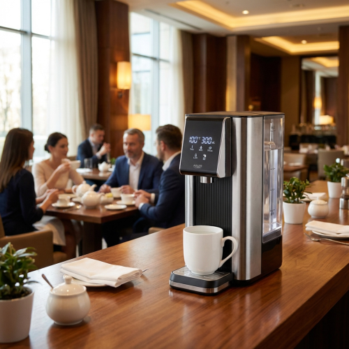 Karstās ūdens dispensers, kas uzvāra ūdeni līdz 100°C 5–10 sekundēs