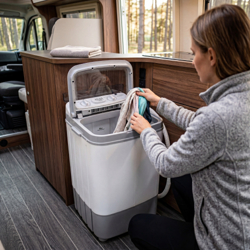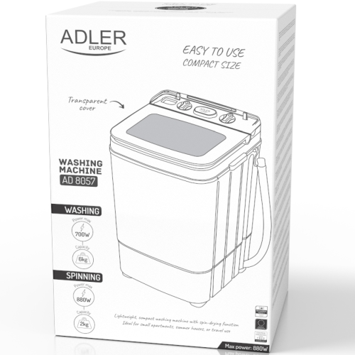 Vieglais un kompaktais dizains padara Adler AD 8057 veļas mašīnu ideāli piemērotu maziem dzīvokļiem, brīvdienu mājām, kopmītnēm, kemperiem un kempingiem.