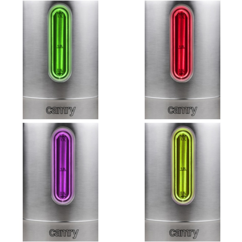 Dažādas vārītā ūdens fona apgaismojuma krāsas atkarībā no izvēlētās temperatūras