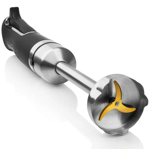 Tā īpaši garā nerūsējošā tērauda kājiņa (240 mm) ļauj strādāt augstos katlos un krūzēs bez šļakstīšanos, savukārt 54 mm trīskāršais titāna asmens nodrošina lielāku pretestību, ilgmūžību un vienmērīgus griezumus.
