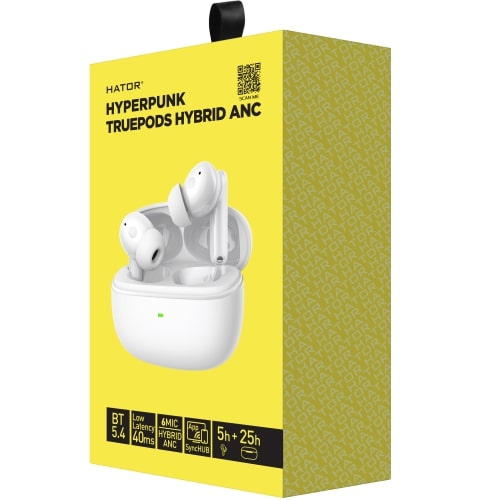 HATOR Hyperpunk Truepods hibrīdās aktīvās trokšņu slāpēšanas austiņas nodrošina iespaidīgu, augstas kvalitātes skaņu ar uzlabotu trokšņu slāpēšanas tehnoloģiju, lai palīdzētu jums koncentrēties neatkarīgi no atrašanās vietas. Ar sešu mikrofonu hibrīda aktīvo trokšņu slāpēšanas sistēmu šīs austiņas efektīvi slāpē fona troksni, savukārt caurspīdīguma režīms ļauj jums apzināties apkārtējo vidi. Ar Bluetooth 5.4, zemu latentumu un līdz pat 25 stundām akumulatora darbības laiku tās ir paredzētas nepārtrauktai lietošanai visas dienas garumā. Intuitīvas skārienvadības ierīces un HATOR SyncHub lietotne nodrošina ērtu vadību un audio pielāgošanu, padarot Truepods par daudzpusīgu pavadoni darbā, ceļojumos un atpūtā.