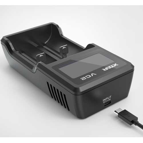 Xtar VC2 - литий-ионное зарядное устройство с двумя отсеками и регулируемыми выходами. Это интеллектуальное зарядное устройство может распознавать и заряжать большинство цилиндрических литиевых батарей размером от 10440 до 26650